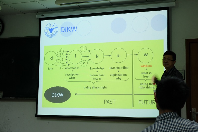 沈岳良老师精心准备了ppt而又不拘泥于ppt,从一张葡萄园的照片引发同学们的激烈讨论,从而引出互联网如同葡萄藤一般交错纵横而又连接有序的本质。运用图文比喻生动形象地向我们讲诉了互联网从web1.0web3.0,从单方向向下传递信息到完全的信息自给自足相互共享。幽默风趣地告诉我们在互联网+时代最重要的就是要会“玩”,要自己去买一些小东西去玩弄它,玩懂它,比如他个人就在前几天又买了一台google平板,是一款完全自由的电子设备,连开关机都需要自己摸索,可以直击各软件运行的背后代码,可以说是学习进步必备法宝。