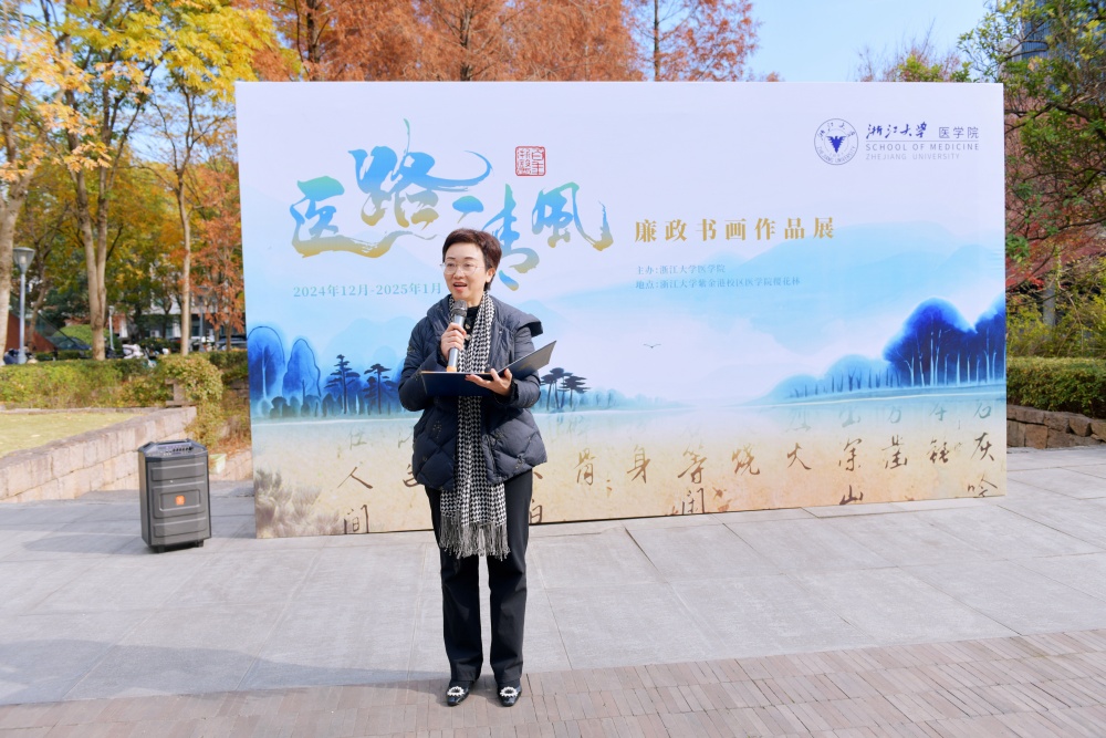 徐凌霄表示,本次“医路清风”廉政书画作品展,是医学院廉洁文化建设的重要内容,旨在颂扬“医路漫漫、清风为伴”的高风亮节和“医德如莲、清廉自守”的高尚品德。“广大师生要将廉洁自律内化于心、外化于行,共同营造风清气正的校园环境”,徐凌霄强调,要在学院医教研高质量发展的道路上,不忘初心、牢记使命,培养廉洁自律道德操守,夯实清正廉洁思想根基,厚植爱党爱国情怀,积极营造风清气正的院风、教风、学风,以实际行动践行“医路清风”的精神品质,为医学事业发展贡献更多力量。
